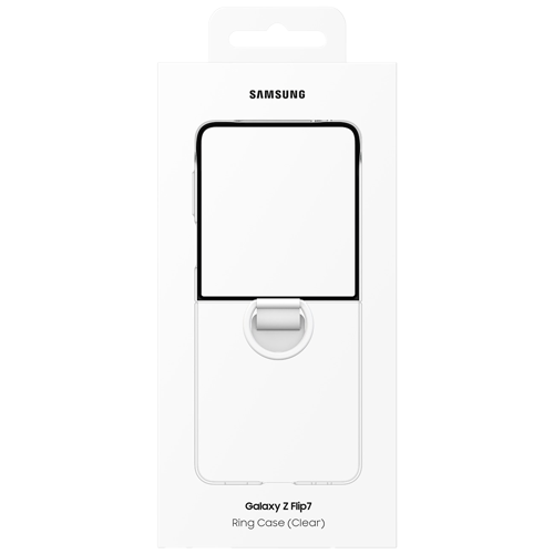 The Samsung Galaxy Z Flip7 Ring Case (Clear), model number EF‑QF766CTEGWW, is an official Samsung accessory designed to provide protection and a secure grip for the Galaxy Z Flip7.