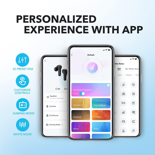 - Soundcore App Support: Allows for a personalized listening experience with access to 22 preset EQs (Equalizer settings) to adjust the sound profile. You can also customize the touch controls.